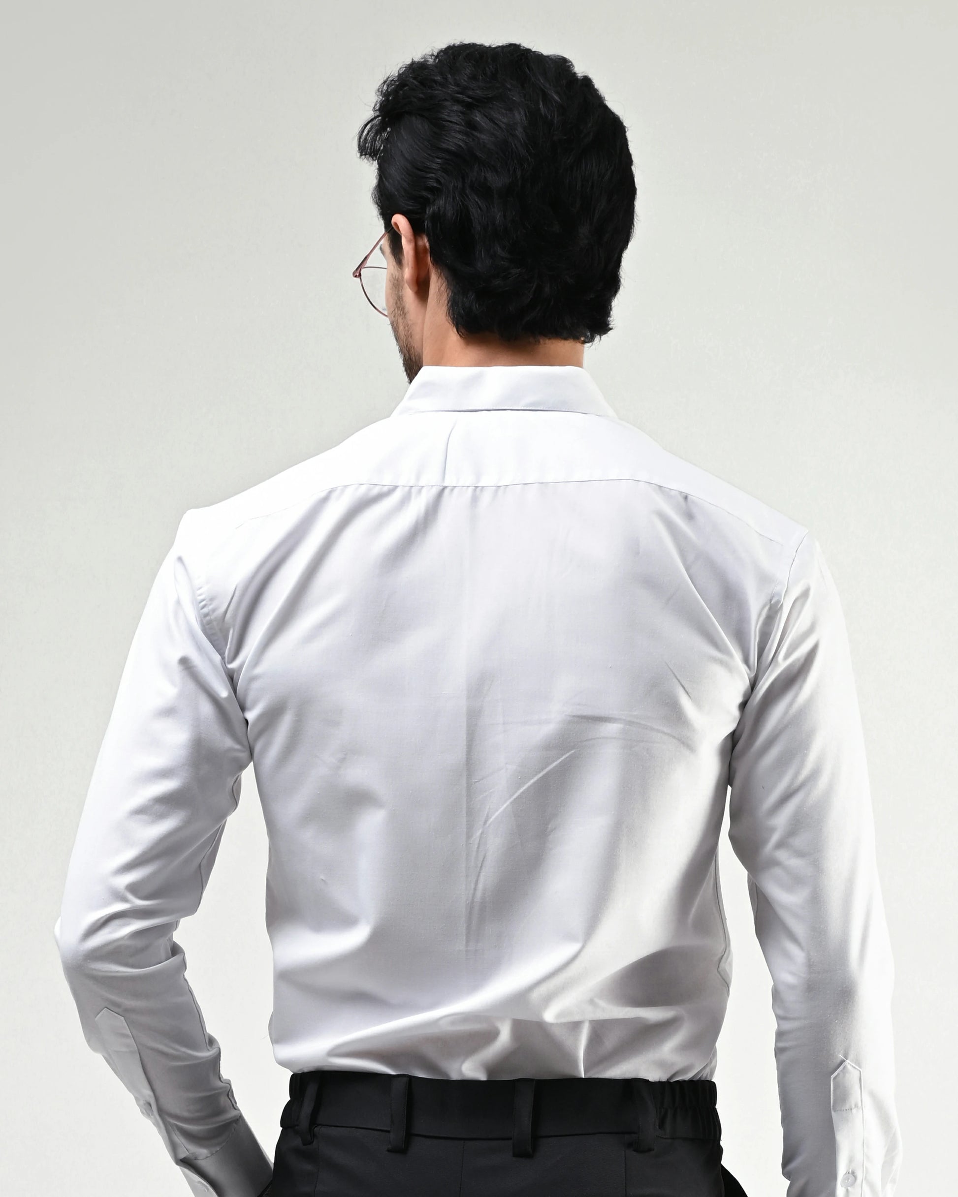 Crafted from a premium cotton-blend fabric, this shirt features an eye-catching abstract mountain-inspired line print across the chest, perfect for those who appreciate subtle yet standout fashion. pair it with black formal trousers, as shown, for a sharp, contrast-driven ensemble that speaks power and sophistication.